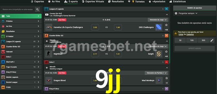 O 9jj oferece uma grande seleção de opções de apostas em e-sports com probabilidades competitivas